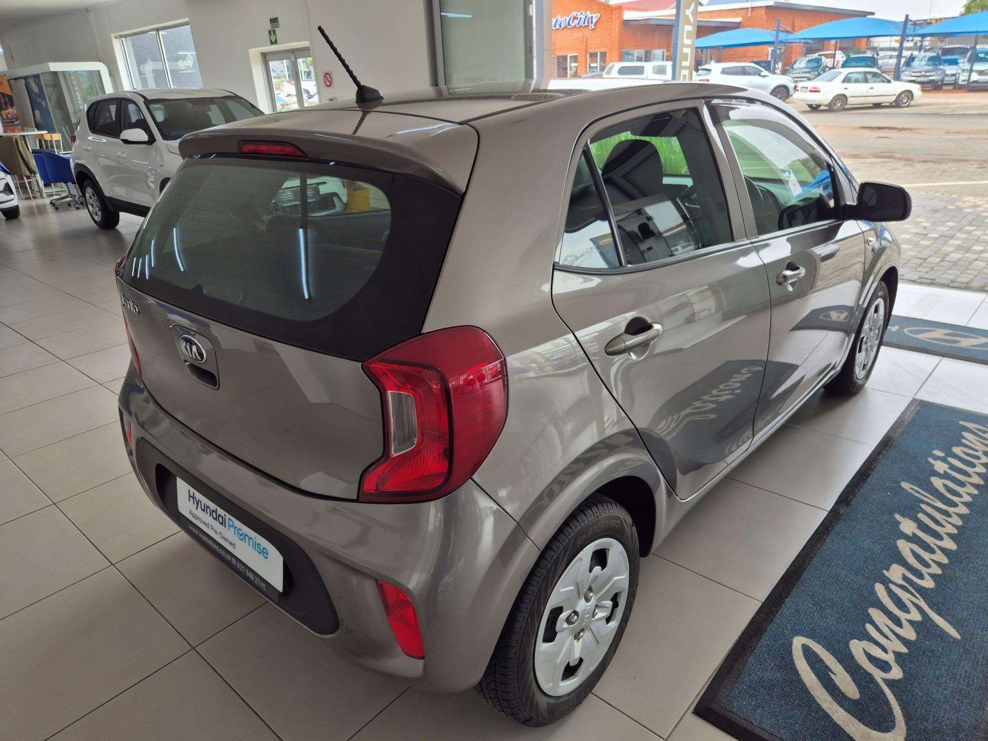 The 2020 Kia Picanto 1.0 STREET in Steel Grey is a smart choice for urban drivers seeking efficiency and practicality. With its compact yet agile design, this vehicle features a frontpositioned 1.0L i3 petrol engine that delivers a reliable 49 kW of power and 95 Nm of torque. Its fuel consumption averages just 5.0 L/100 km, offering an impressive range of up to 700 km on a full 35litre tank, making it perfect for everyday commuting and city adventures. Designed with convenience in mind, the Kia Picanto ensures a smooth driving experience with a top speed of 155 km/h. While it doesnt come with a warranty, its wellengineered build and low CO2 emissions of 118 g/km enhance its appeal for environmentally conscious drivers. Whether youre navigating through tight city streets or looking for a costeffective vehicle with practical features, the Picanto 1.0 STREET is an ideal companion for your journey.